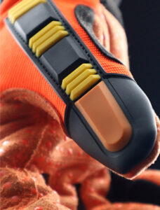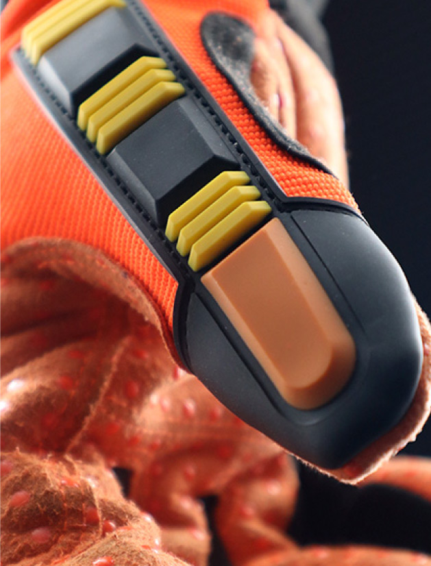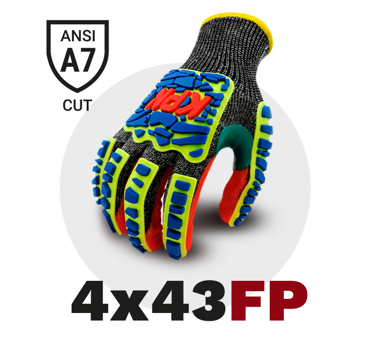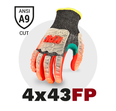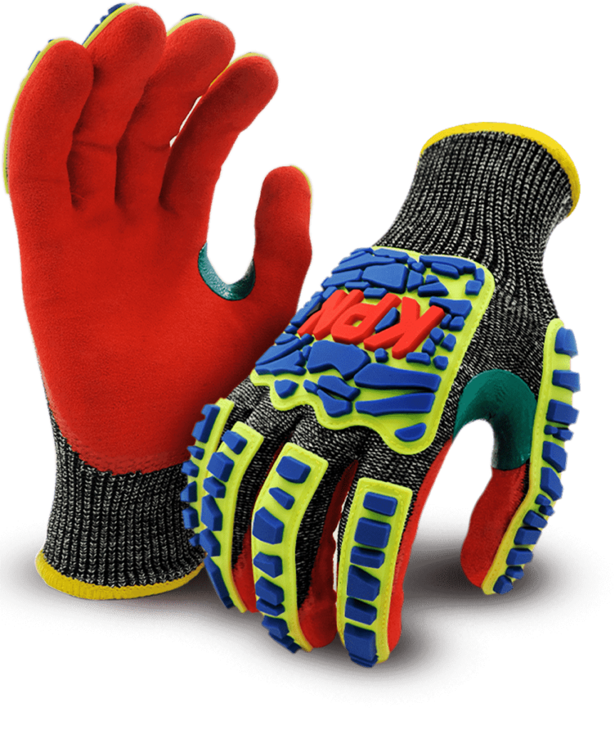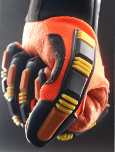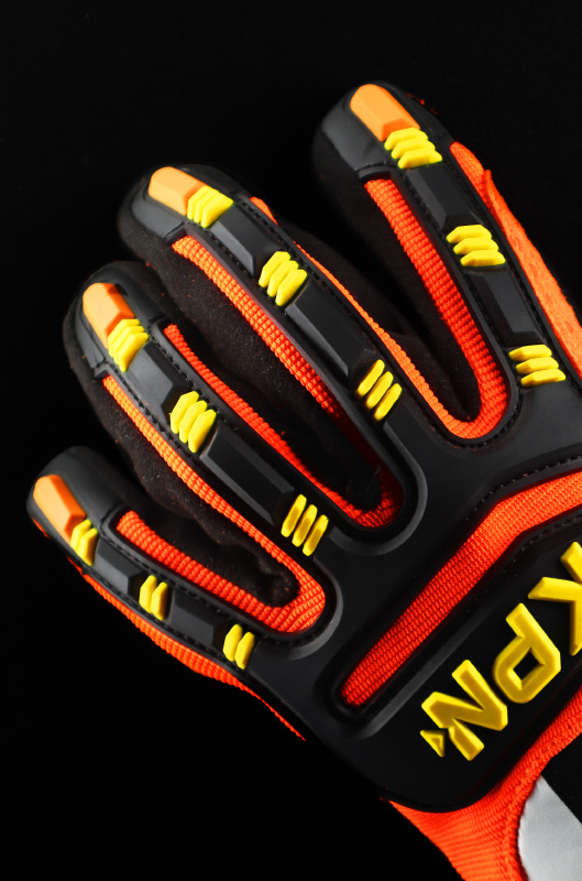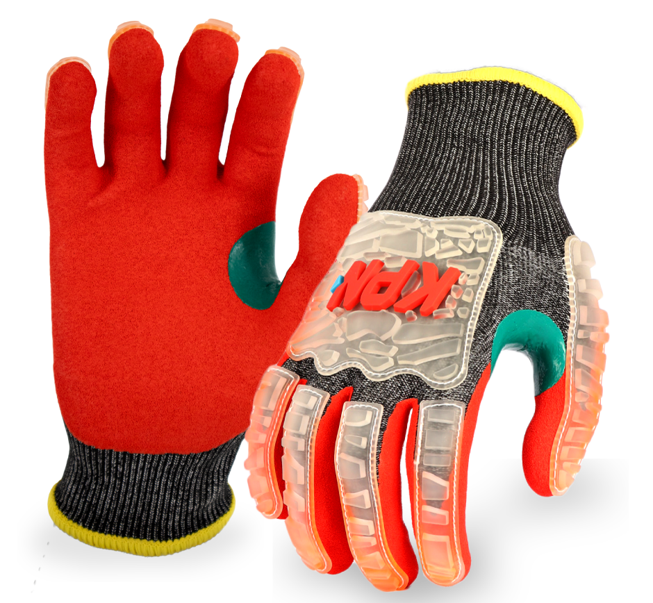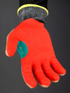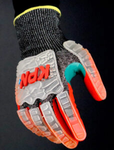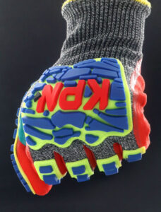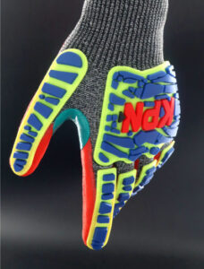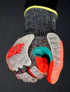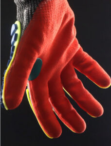 Material tricotado en malla de polietileno de Alto perfomance (HPPE), Alambre de Acero, Nylon y Spandex, haciendo el guante altamente resistente al corte en la palma y dorso.